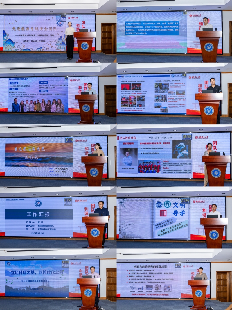 最终,经团队申请、学院推荐、网络投票、现场评审等环节,信息科学与工程学院流程智造创新团队、生物工程学院合成与系统工程导学团队、材料科学与工程学院AI plus高分子材料导学团队、机械与动力工程学院先进能源系统安全团队、化工学院大分子组装材料化工导学团队等5支团队获评首届研究生“文明导学团队”,药学院分子模拟与设计团队、社会与公共管理学院群心向学团队、生物工程学院生物催化与生物合成团队、体育科学与工程学院体育产业与健康管理导学团队、化学与分子工程学院有机发光染料团队等5支团队获评提名奖。