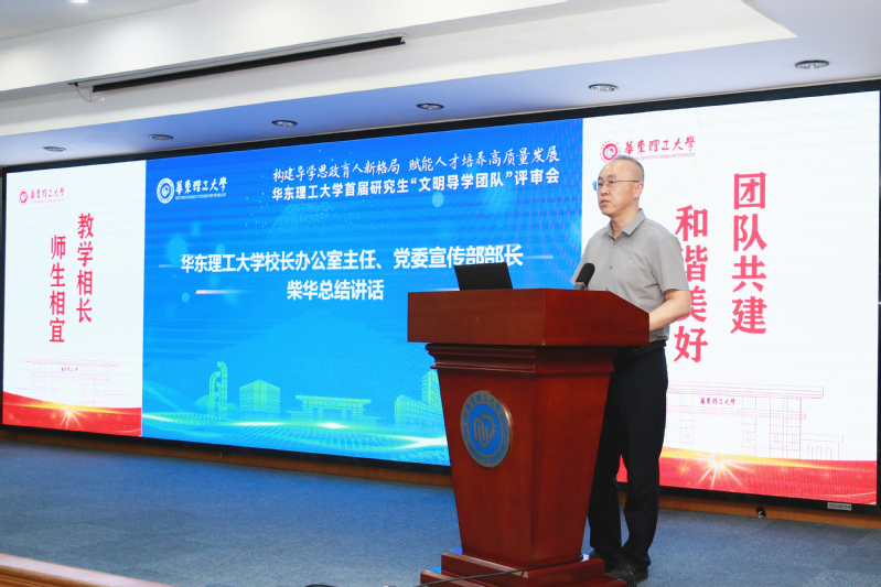 柴华在对本次活动进行总结时说,研究生“文明导学团队”评选,作为创新研究生思想政治工作和进一步深化文明创建的工作尝试,对于构建文明导学关系,探索共建“导学思政”和提升研究生培养成效具有重要意义。本次展示评审内容丰富、形式创新、精彩纷呈,是学校推进落实上海市建设习近平文化思想最佳实践地行动方案、深化精神文明建设的重要举措。希望各团队继续共筑和谐导学关系、浓郁导学文化氛围、创新导学思政育人,为书写“教育强国 华理有为”的奋进之笔展现时代担当。